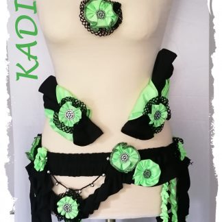 UNIKAT Gürtel und Zubehör in schwarz/giftgrün für Modern Dance, Tribal Fusion, Phantasie, Folklore, Bauchtanz – 4-tlg. Größe S/M