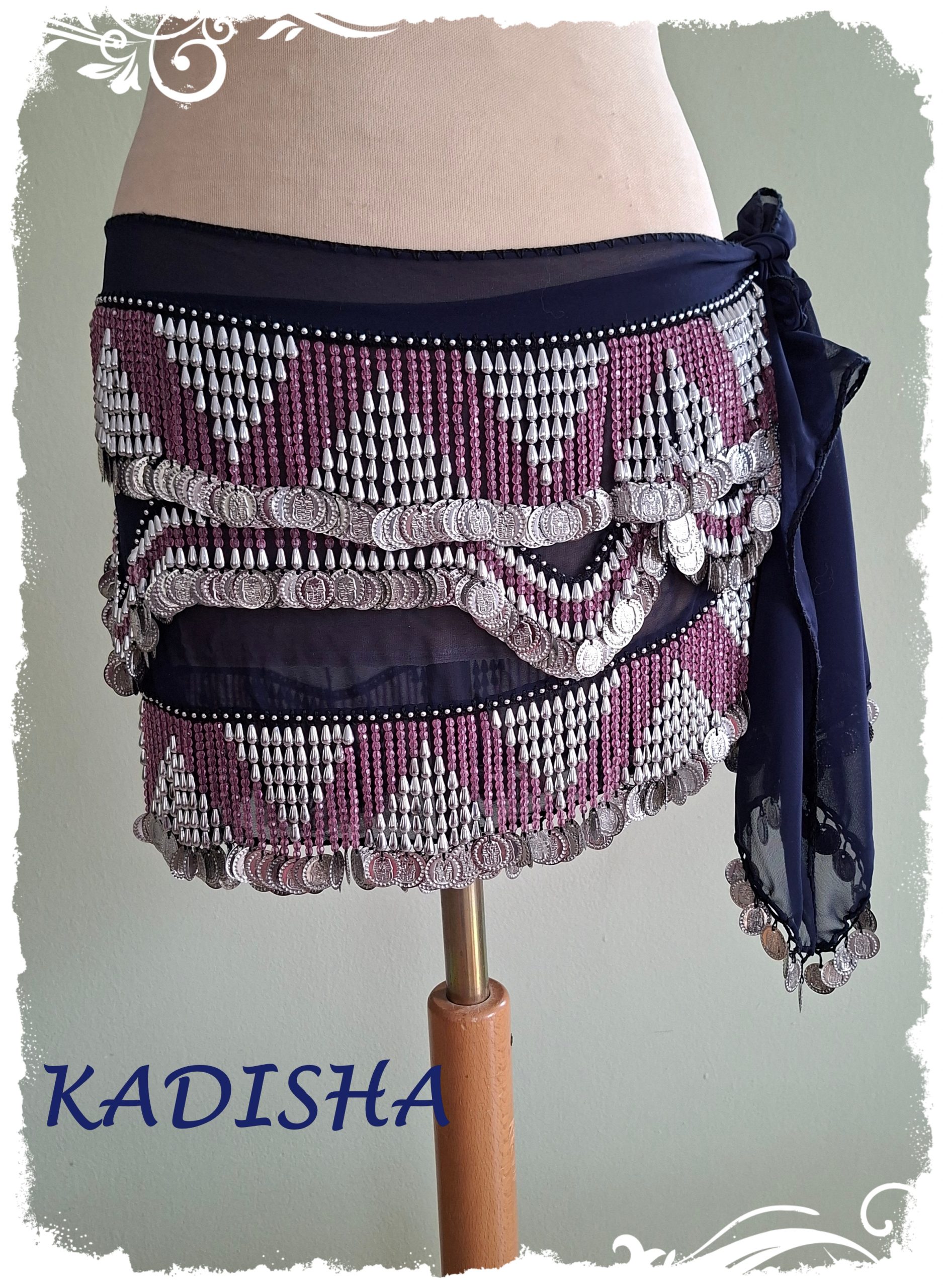 Hüfttuch in nachtblau aus Chiffon mit silbernen Münzen, Größe M