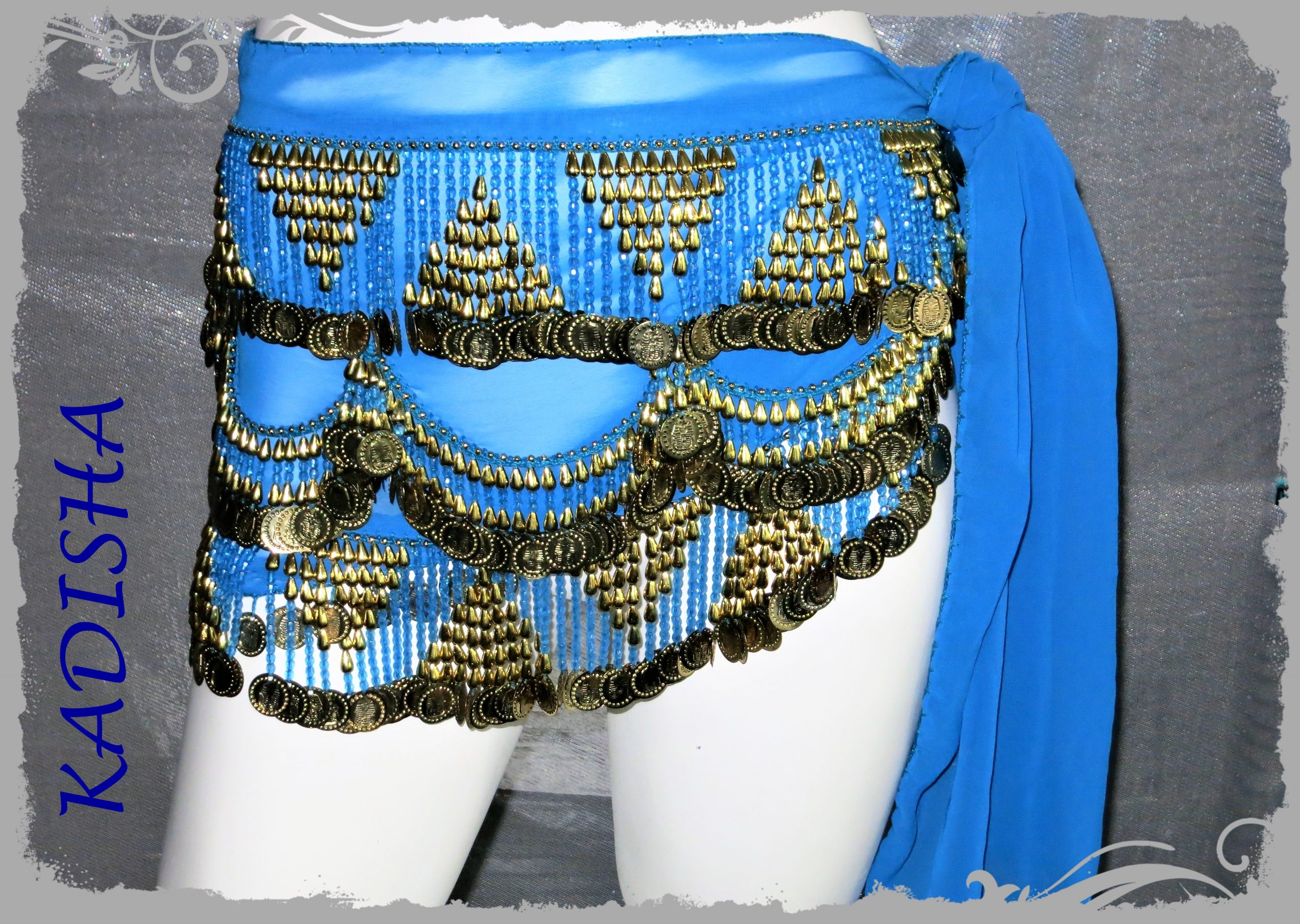 Hüfttuch in türkis mit goldenen Münzen, Größe L