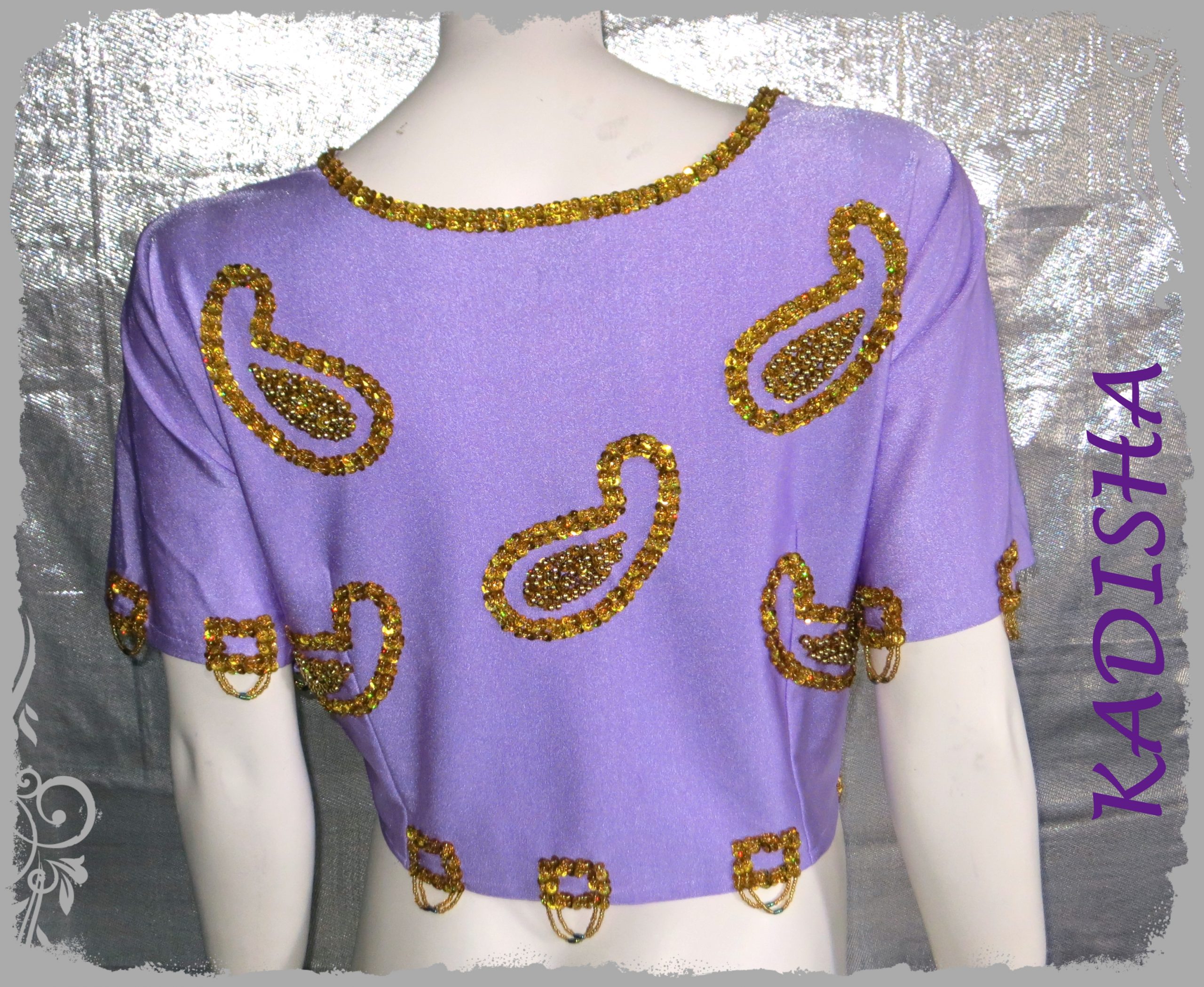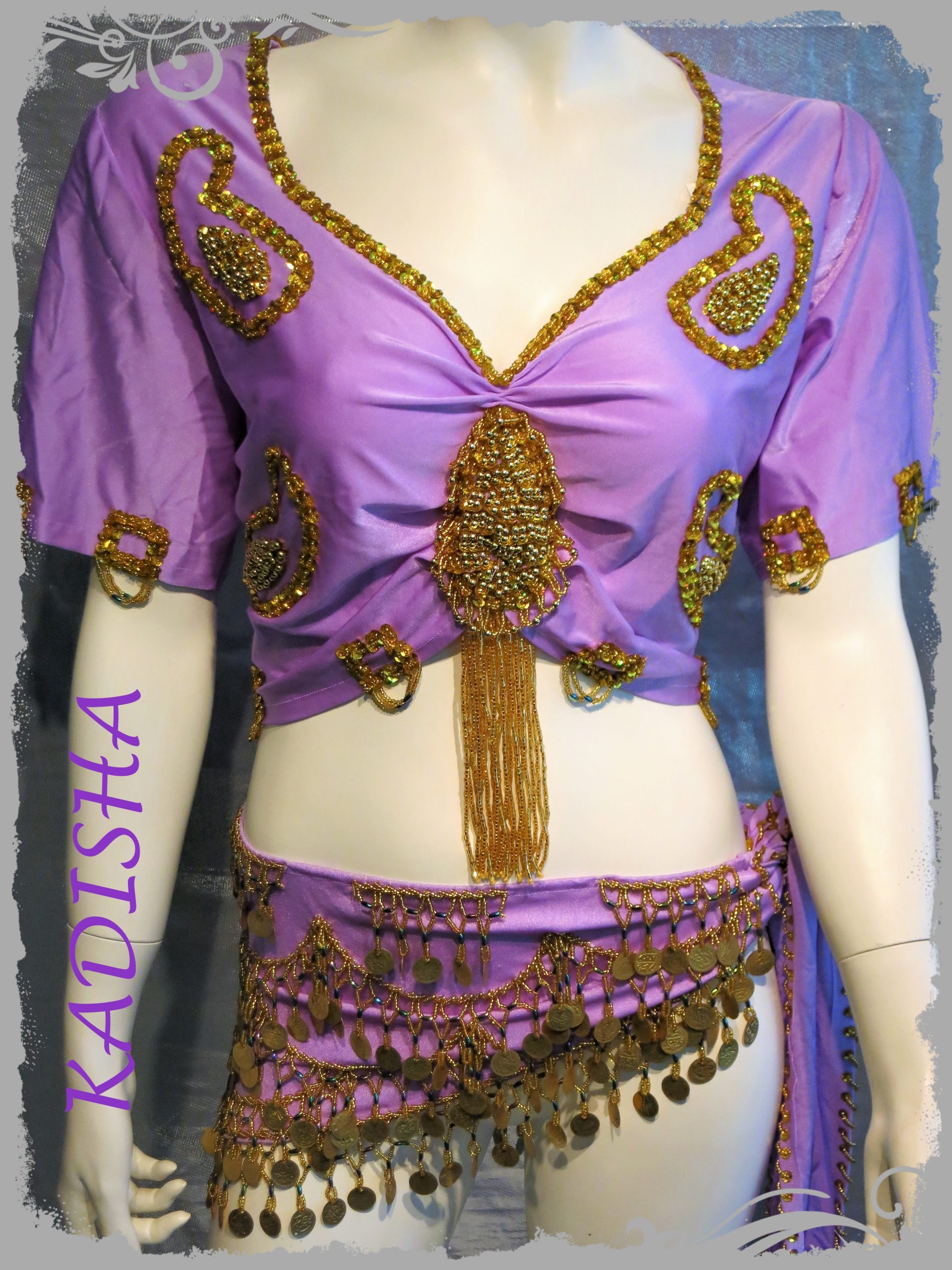 Ein attraktives Set in der Farbe Flieder. Das Oberteil hat einen schönen Ausschnitt, der Hingucker ist vorne das große bestickte Ornament mit hängenden Perlfransen. Es ist sehr bequem und hat eine gute Passform.