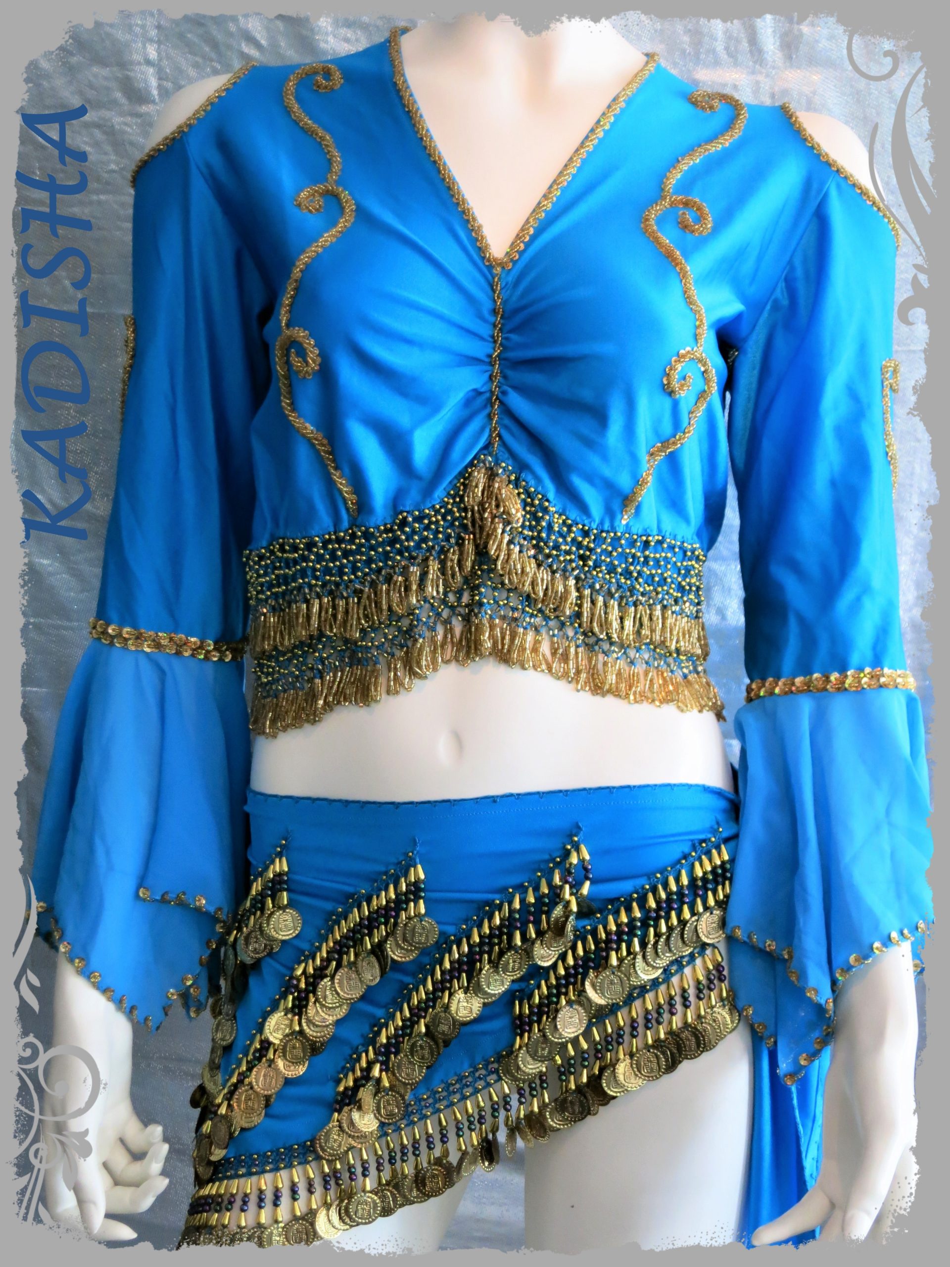 Das Oberteil hat 2 Reihen Perlenborten. Hingucker sind die Ärmel mit Öffnungen an den Schultern, und den flatternden Chiffonteilen. Es ist super bequem – durch den eingezogenen Unterbrustgummi kann das Top nicht hoch rutschen und sitzt perfekt bei kleiner bis großer Oberweite.